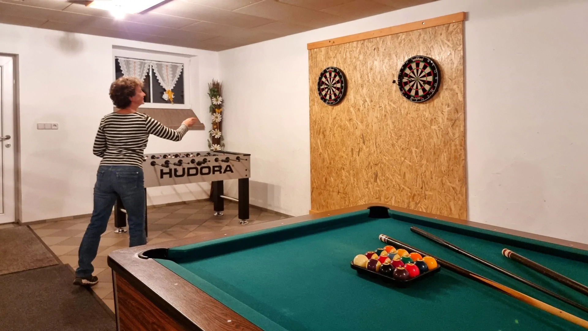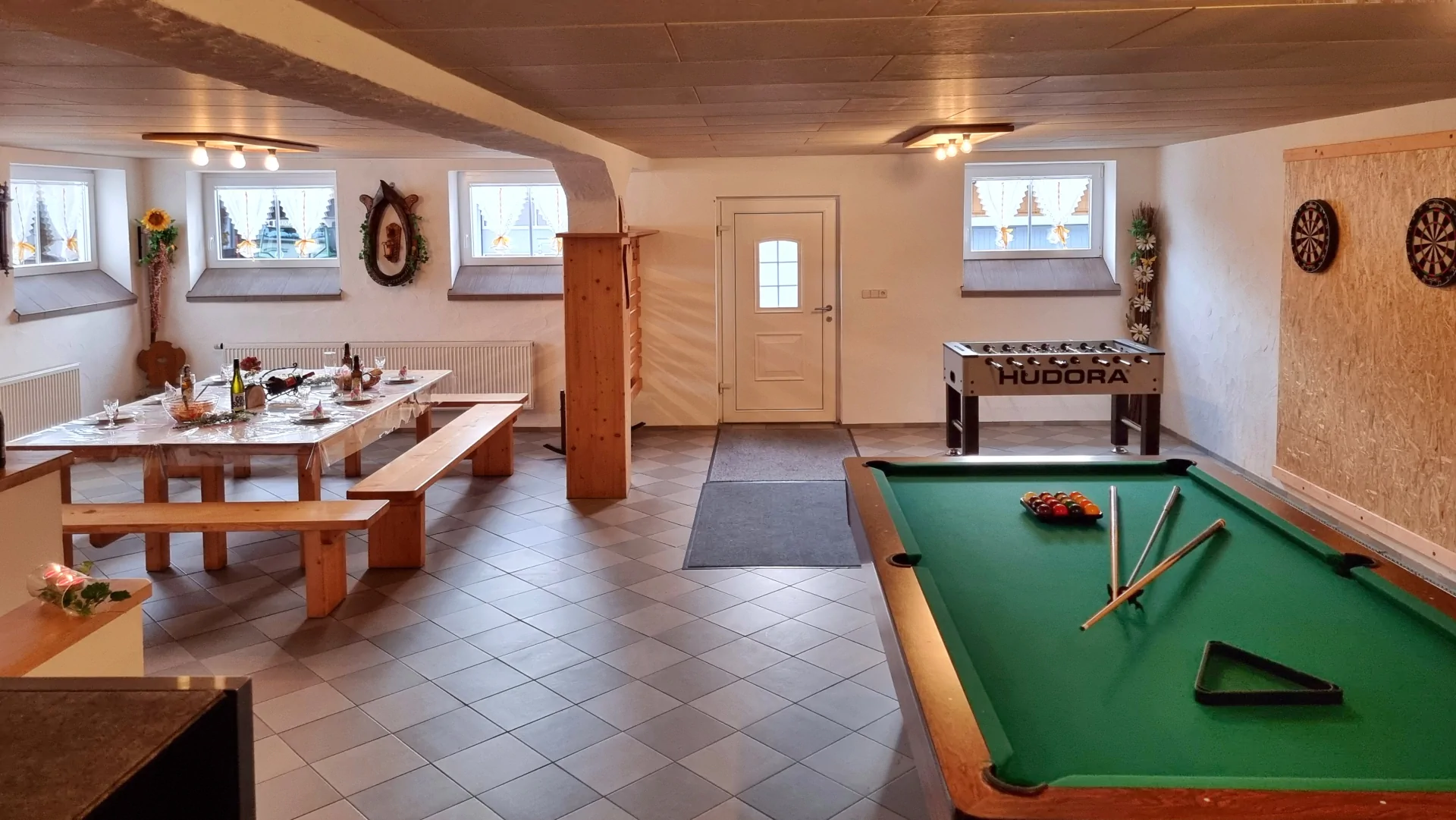 Willkommen im Ferienhaus vom Inge und Max Achatz im Bayerischen Wald – der ideale Ort für Gruppen, Familien oder Freunde, die gemeinsam eine unvergessliche Zeit verbringen möchten! Unser Ferienhaus bietet einen großzügigen Gruppenraum, ausgestattet mit Billard, Kicker und Dart, der perfekt für gesellige Runden und gemeinsame Aktivitäten ist. Hier können Sie nicht nur spielen, sondern auch zusammen feiern und gemütlich frühstücken. Starten Sie den Tag mit einem gemeinsamen Frühstück in geselliger Atmosphäre und lassen Sie den Abend bei Spiel und Spaß ausklingen. Erleben Sie eine unbeschwerte Auszeit im wunderschönen Bayerischen Wald!