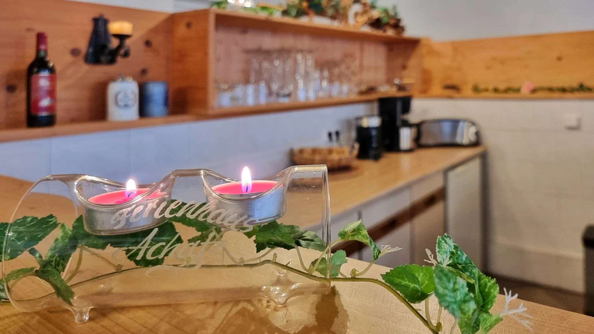 • Küchentheke mit Kühlschrank, Spülmaschine, Geschirr zum gemeinsam Frühstücken, Essen und Feiern
